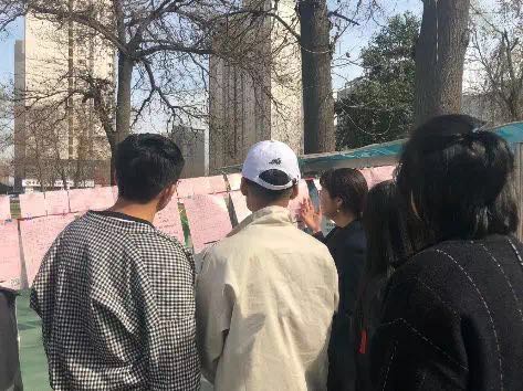 下午两点志愿者们来到社区服务中心。温暖的下午,社区广场上阳光正好,爷爷奶奶们坐在树荫下聊着天,整个广场都是满满的幸福感。社区服务中心门口有两排快挂满粉红色纸的绳,是社区正在举办的“爱在樱花”活动,社区主任和志愿者老师为大家介绍了活动的内容及其意义。这次活动旨在帮助人们找到能给自己幸福的另一半,粉红色纸上写的是个人简介,其中不乏高学历、能力强的人们。来到这里的人大多是来为自家孩子看看是否有合适人选的。